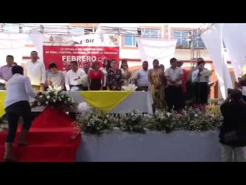 Pinotepa Nacional Oax., 19 enero 2014. Cien parejas legalizaron su estado civil, al realizarse las bodas colectivas en esta ciudad, en el marco del programa Febrero mes del Amor y del Matrimonio del Gobierno de Estado.