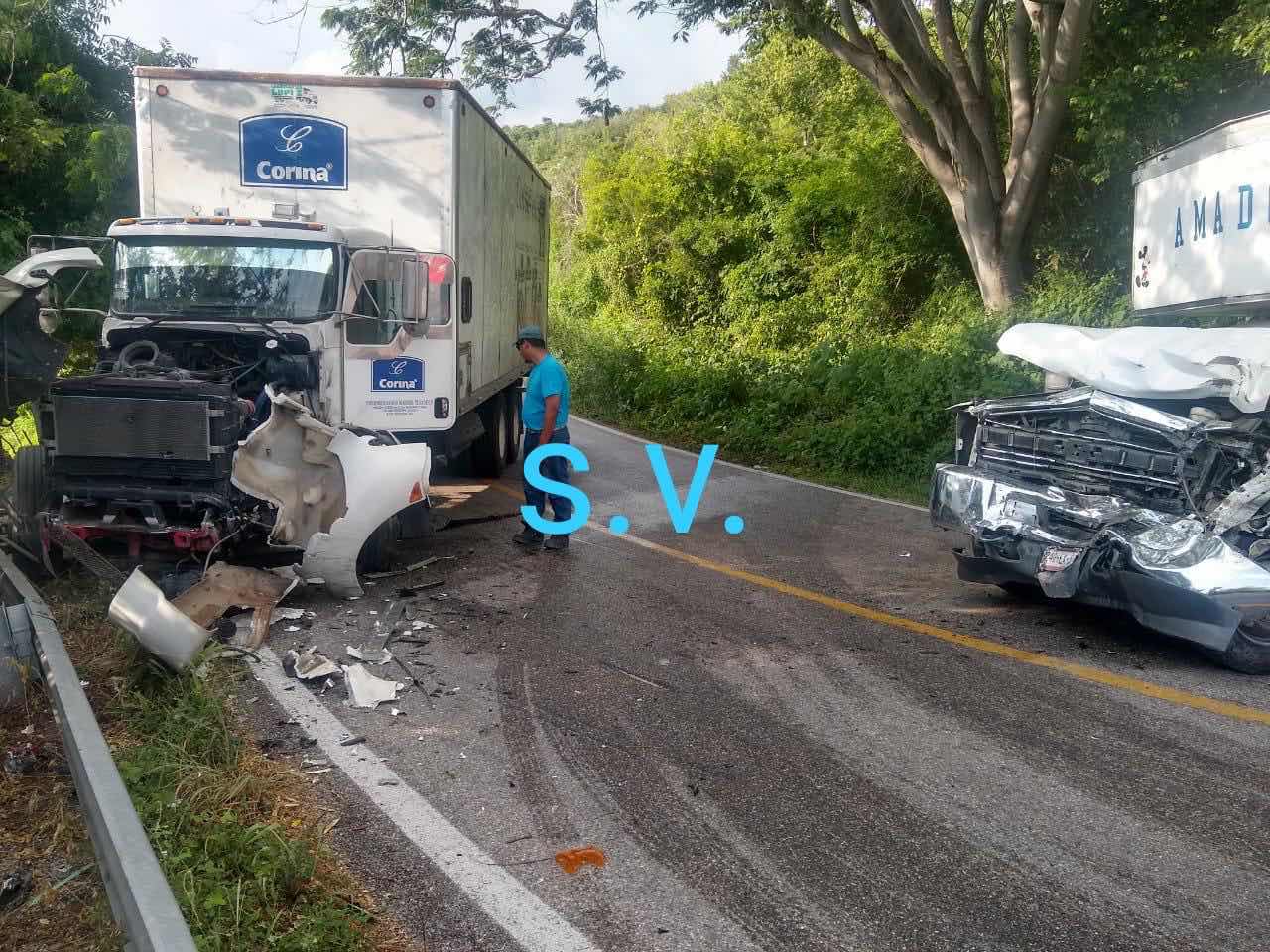 Pinotepa Nacional Oax., Un torton y una camioneta de tres y media toneladas chocaron de frente hace unos momentos sobre la carretera federal 200 Pinotepa-Acapulco a la altura de la desviación a Motillas en el municipio de Pinotepa Nacional Oaxaca.