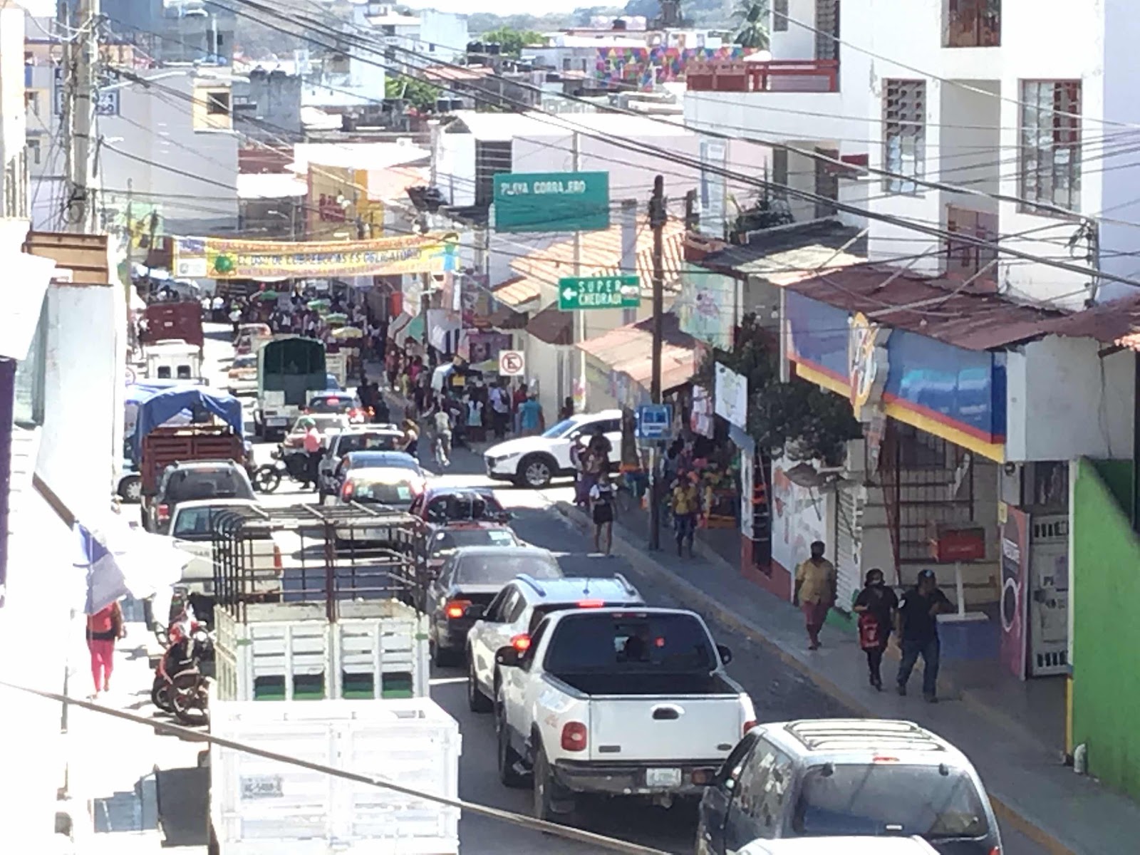 Pinotepa Nacional Oax.,  23 diciembre 2020. A pesar de que Oaxaca pasó del semáforo epidémico Amarillo al Naranja por alto riesgo de contagios de COVID-19, se vive un descontrol para evitar aglomeraciones en los espacios públicos de Pinotepa Nacional Oaxaca.
