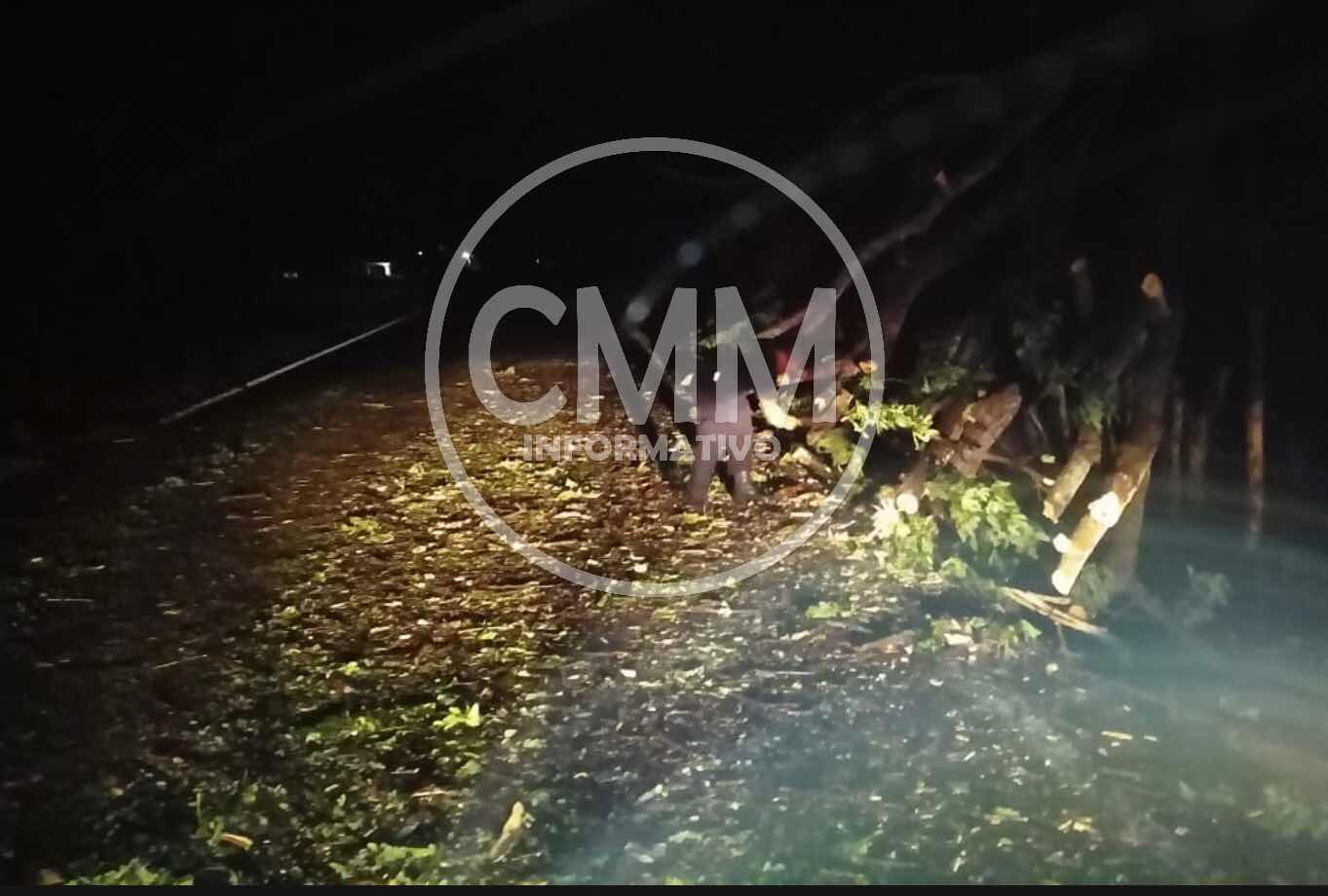 Pinotepa Nacional Oax., 07 Mayo 2021. Debido a la fuerte lluvia y del viento la noche de este jueves, un árbol cayó sobre la carretera federal 200 Pinotepa- Salina Cruz entre Huaxpaltepec y Jamiltepec en la costa de Oaxaca.