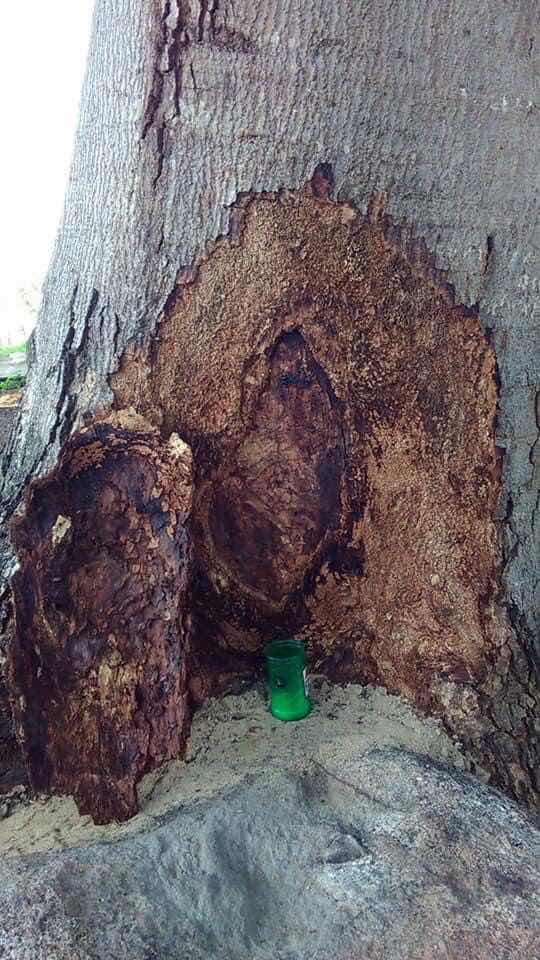 Pinotepa Nacional Oax., 15 junio 2021. La imagen de la Virgen de Guadalupe, apareció, hace 20 días, en un árbol en la población de Mancuernas en el municipio de Pinotepa Nacional Oaxaca.