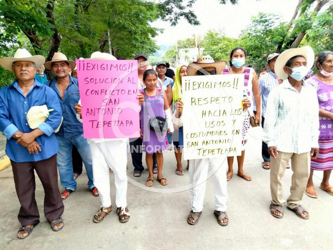 Los manifestantes mostraron sus pancartas al primer mandatario de la nación, donde se leía “exigimos respeto hacia los usos y costumbres de San Antonio Tepetlapa “ “fuera comisionado y auditoría en San Antonio Tepetlapa “ “ exigimos solución al conflicto de San Antonio Tepetlapa “.