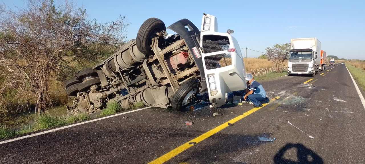 Al parecer, el conductor se pestañeo y perdió el control de la unidad pesada y se salió de la cinta asfáltica a la altura del paraje Alto el Pozo, en inmediaciones de la vía federal.
