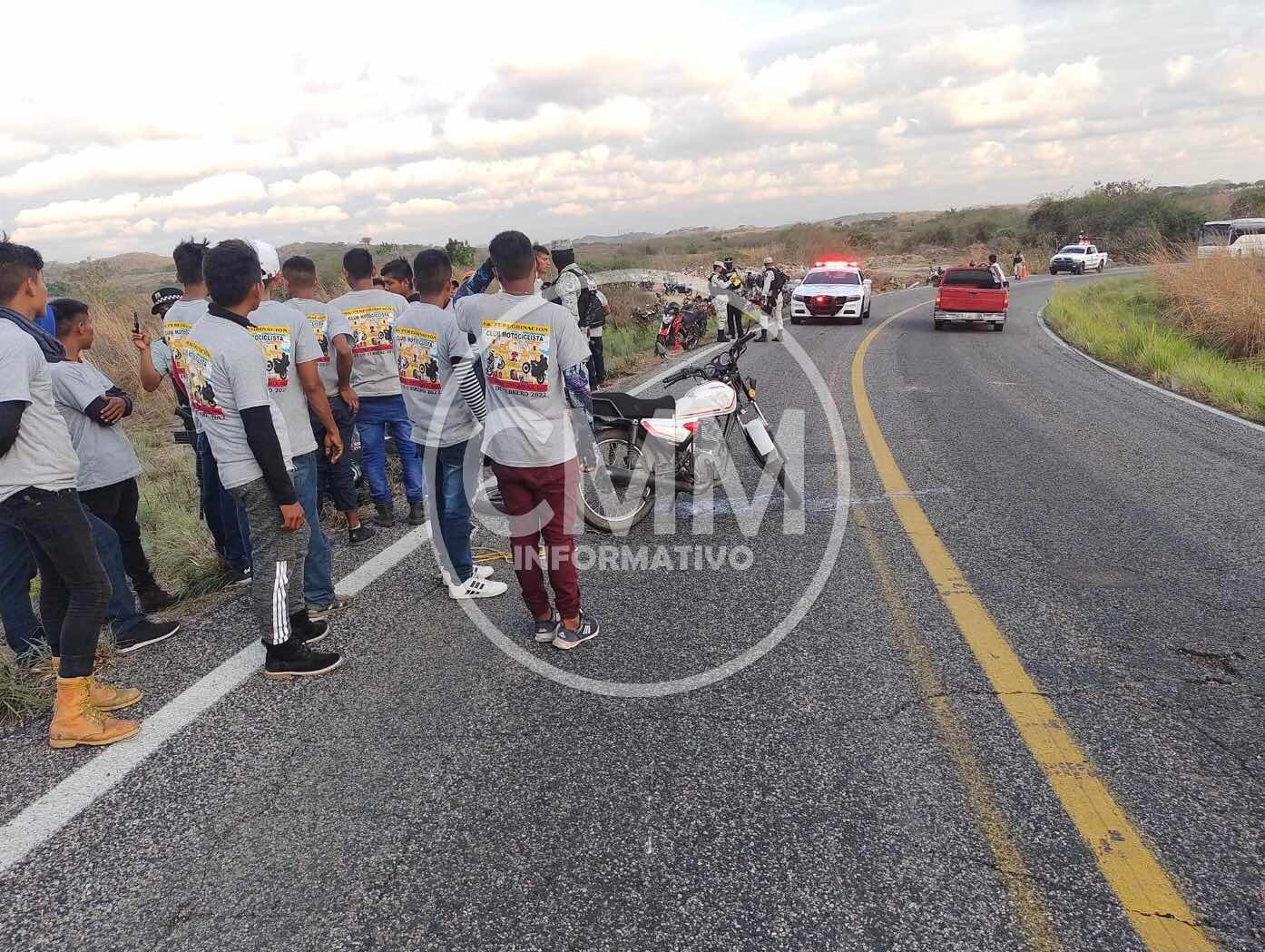 Pinotepa Nacional Oax., 28 febrero 2022. Un choque de motos dejó a siete peregrinos lesionados esta tarde de domingo sobre la carretera federal 200 Pinotepa Acapulco en el kilómetro 219 cerca de la población de la La Estancia Grande en la costa de Oaxaca.