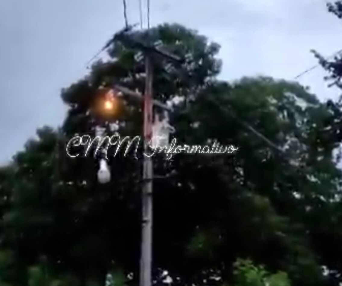 Pinotepa Nacional Oax., 28 agosto 2022.Se reportó a la CFE desde las 5 PM que había un corto en la calle 2 norte entre 8a y 10a oriente de Pinotepa Nacional y no llegaron y ahora, se empiezan a quemar partes del transformador, reportaron vecinos, del barrio de las Flores.