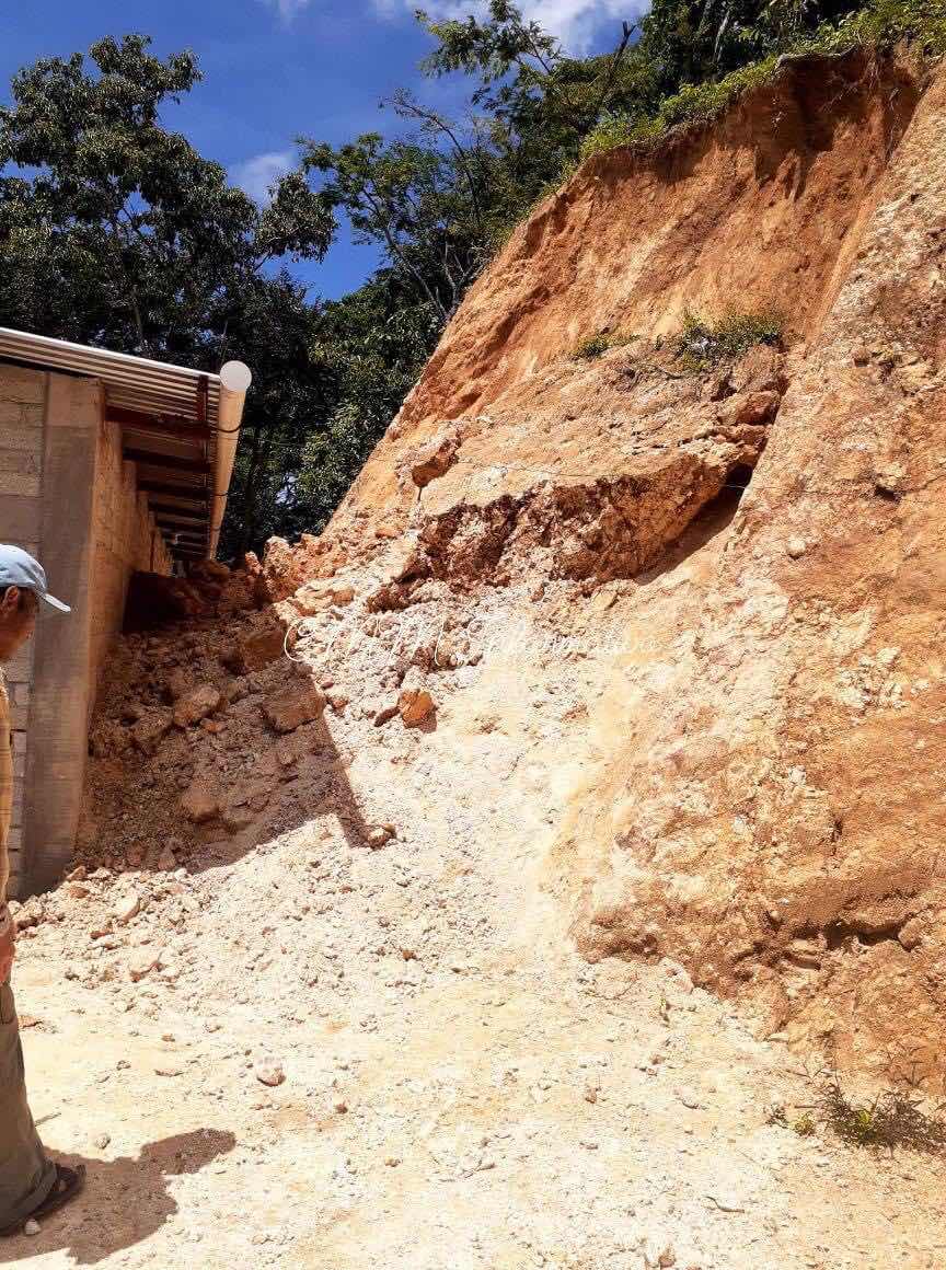 Ixtayutla Oax., 21 septiembre 2022. Un derrumbe provocado por las recientes lluvias, provocó que un bordo de tierra cayera sobre una vivienda en la comunidad de El Huamuche en el municipio de Santiago Ixtayutla en la costa de Oaxaca.