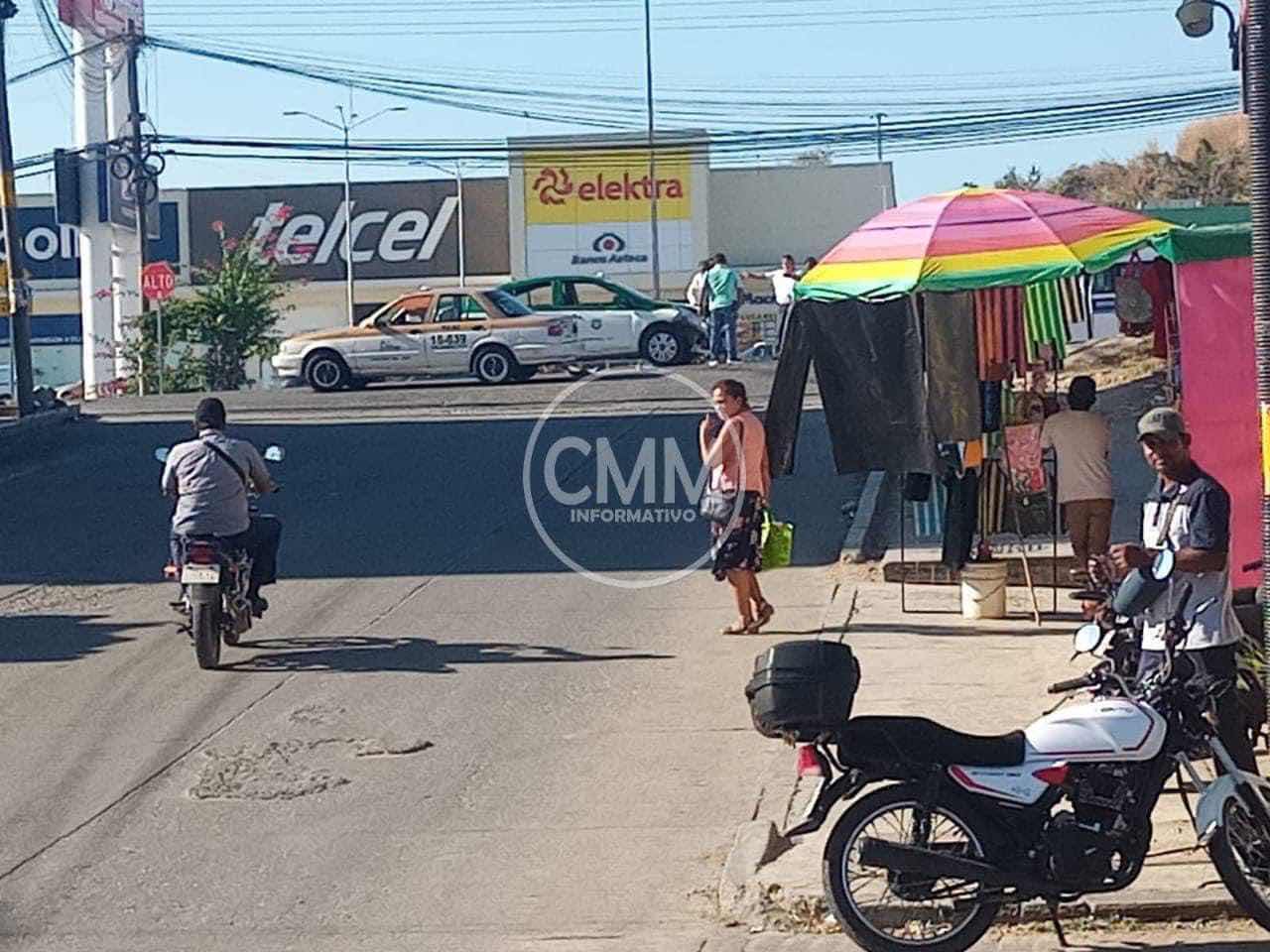 Pinotepa Nacional Oax., 24 enero 2024.Un choque entre dos taxis 🚕 se suscitó hace unos momentos sobre el bulevar de Pinotepa Nacional Oaxaca