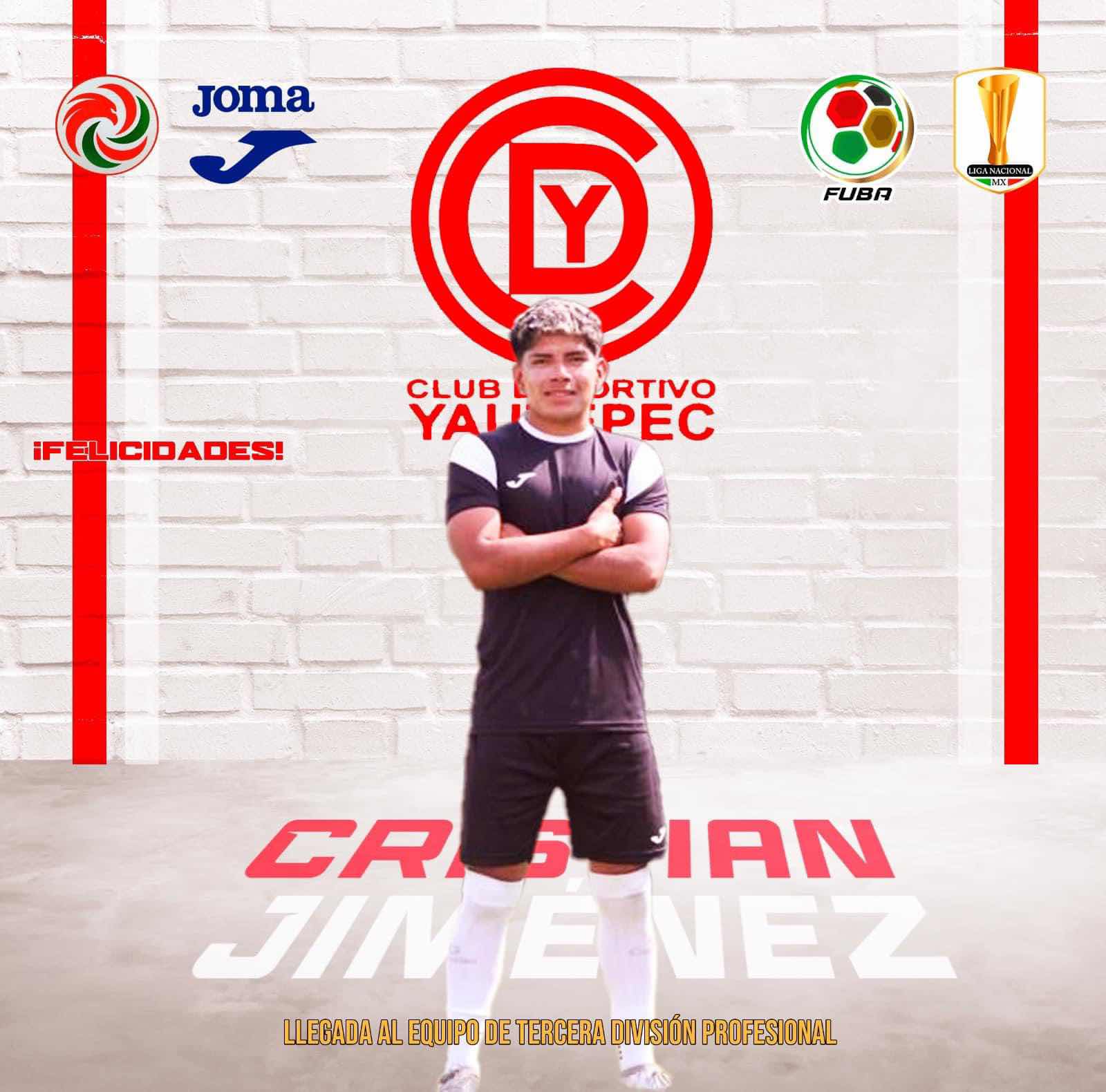 San Pedro Atoyac Oax., 25 enero 2024.El Club Deportivo Yautepec informó sobre el debut oficial de Cristian Jiménez Alonso en la tercera división, quien es originario de San Pedro Atoyac, Oaxaca.