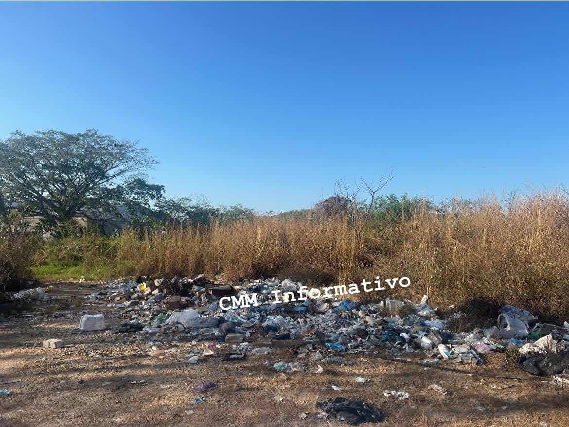 El lugar esta lleno de bolsas 👜, cartones, botes de plástico, frutas 🍇 en mal estado entre otros desechos.