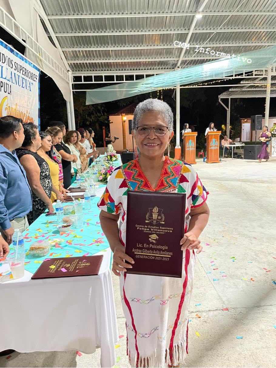 Jamiltepec Oax., 24 enero 2024.A los 60 años de edad, se graduó como Licenciada en Psicología Andrea Gilberta Avilés Arellanes originaria del municipio de Santiago Jamiltepec en la costa de Oaxaca.