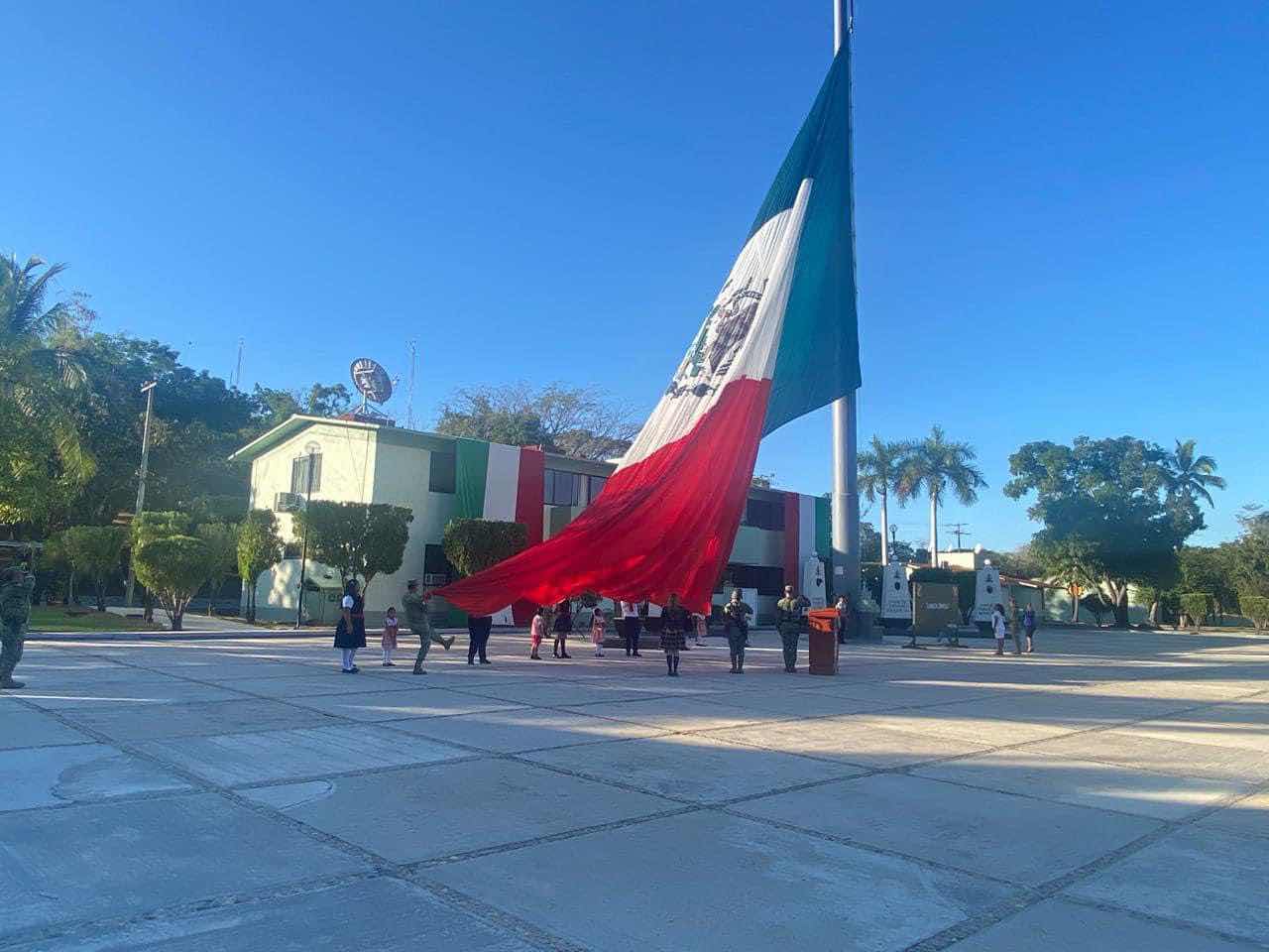 Pinotepa Nacional Oax., 19 febrero 2024.La preparatoria Emiliano Zapata y el jardín de Niños Alvaro Carrillo rindieron honores a la bandera este día en el 47 Batallón de Infantería de Pinotepa Nacional Oaxaca