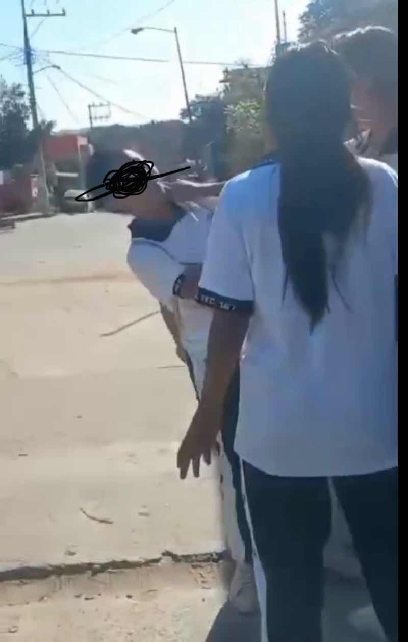 En un video, dos adolescentes en una calle increpan a otra, las tres uniformadas, donde le comienzan a reclamar de manera agresiv4, una le dice “de mi no vas a estar hablando” en tanto la otra le da una bofetad4.