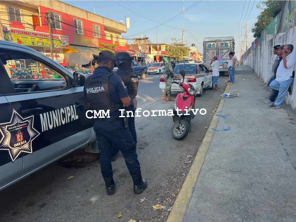 Pinotepa Nacional Oax., 01 marzo 2024.Un choque se registró hace unos minutos entre un taxi y una motocicleta en el barrio del Puente de Pinotepa Nacional Oaxaca