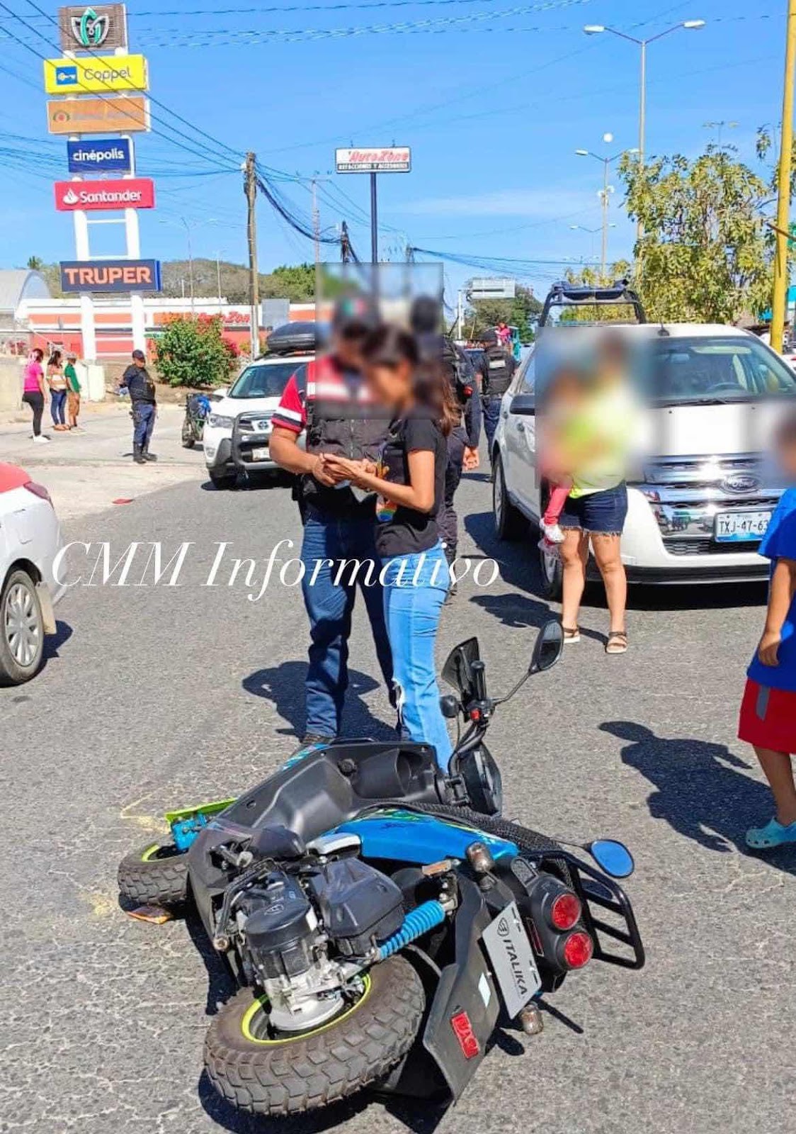 Pinotepa Nacional Oax., 25 marzo 2024. Un choque entre una moto y una camioneta se produjo hace unos minutos en el bulevar de Pinotepa Nacional Oaxaca
