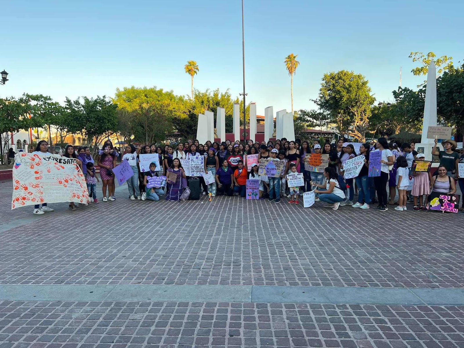 Tras la culminación de la marcha, las feministas dejaron un tendedero de consignas en la explanada del palacio municipal; las autoridades locales reportaron que no hubo ningún incidente que lamentar.