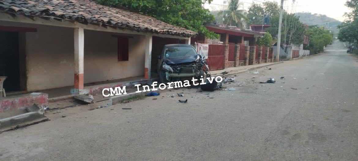 San Sebastián Ixcapa Oax., 03 marzo 2024.Un aparatoso choque se registró hace unos momentos entre una camioneta y un coche que dejó a un herido en la población de Camotinchan en el municipio de San Sebastián Ixcapa en la costa de Oaxaca