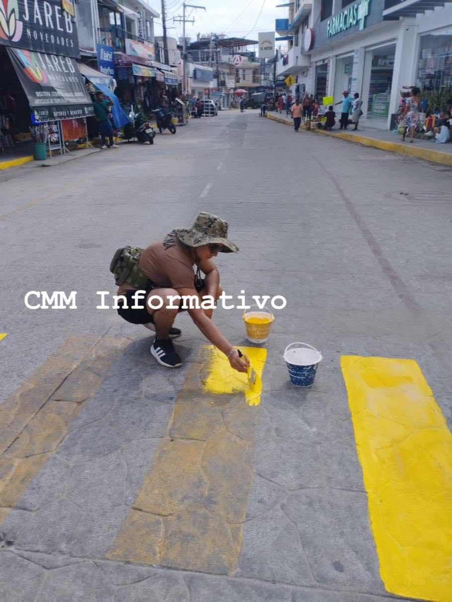Pinotepa Nacional Oax., 02 marzo 2024.Elementos de la Secretaría de Marina realizan trabajos extras como pintar calles, obligados por el director de seguridad pública municipal de Pinotepa Nacional Oaxaca
