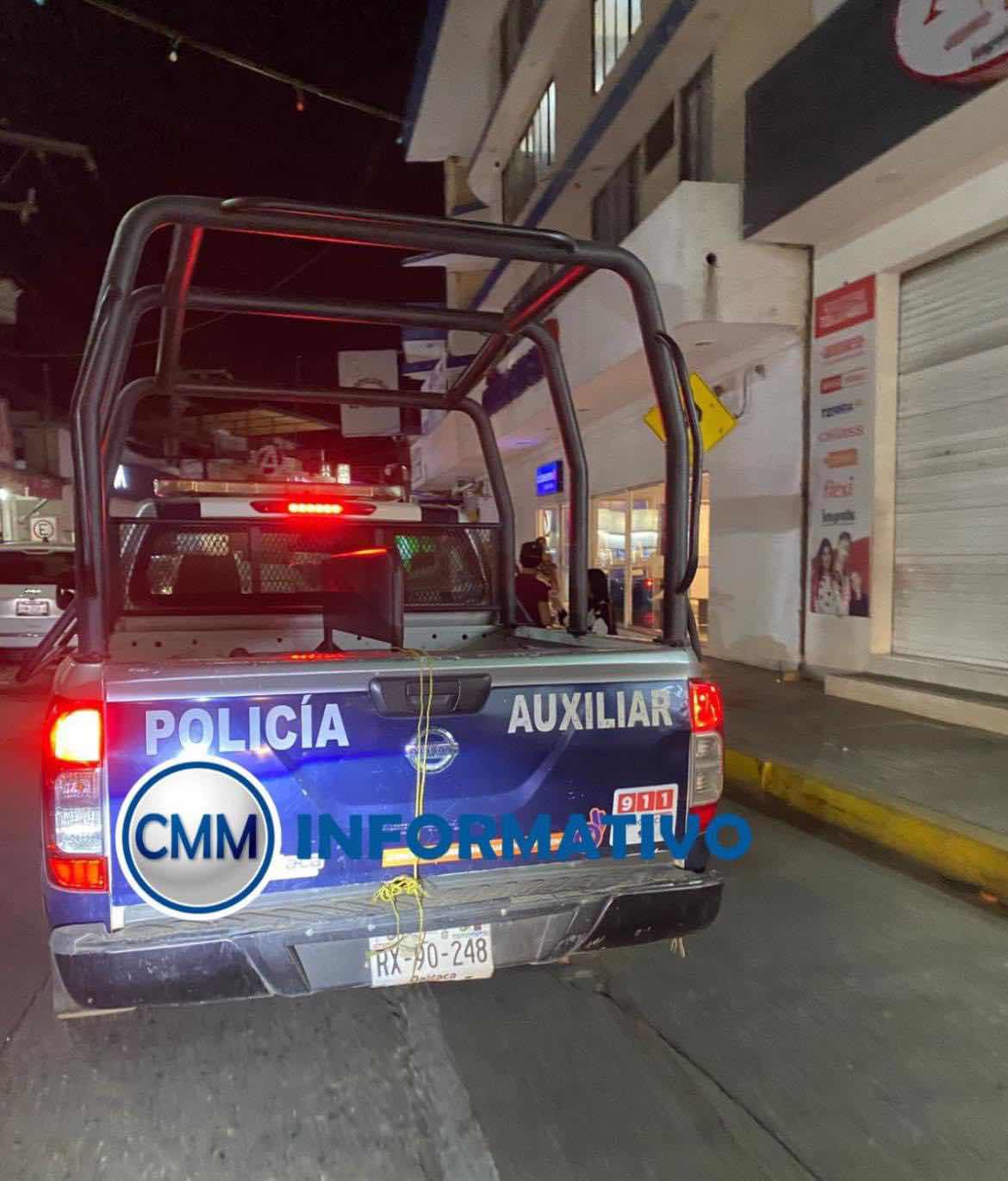 Pinotepa Nacional Oax., 14 marzo 2024. Una patrulla de la Policía Auxiliar por poco atropella a una motoneta en el centro de Pinotepa Nacional Oaxaca