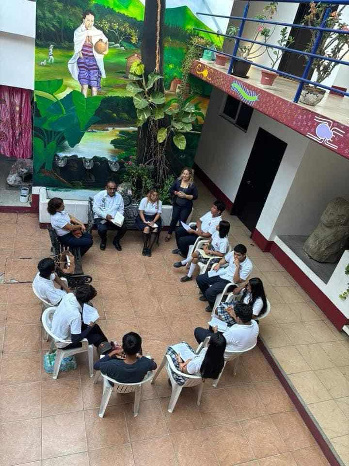 Pinotepa Nacional Oax., 19 abril 2024. Alumnos de la Preparatoria Federal Emiliano Zapata de Pinotepa Nacional realizan en la Casa de la Cultura círculo literario teniendo como invitado de honor la grata presencia del Regidor de Educación y Exalumno de dicha institución, el maestro Rolando Jesús Gasga Viruel, a quien agradecen infinitamente su disposición y extraordinaria participación. La escuela lleva 57 años fomentando la lectura, en ésta ocasión leyeron a Juan Rulfo de los escritores más notables de la narrativa mexicana.