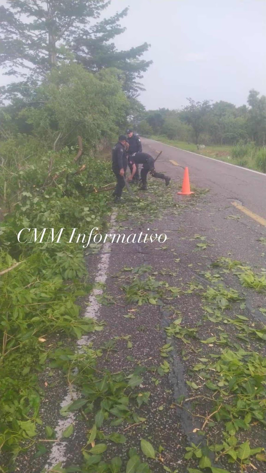 Por esto, elementos de la Policía Municipal de San Andrés Huaxpaltepec realizaron labores de retiro de los árboles 🌳.