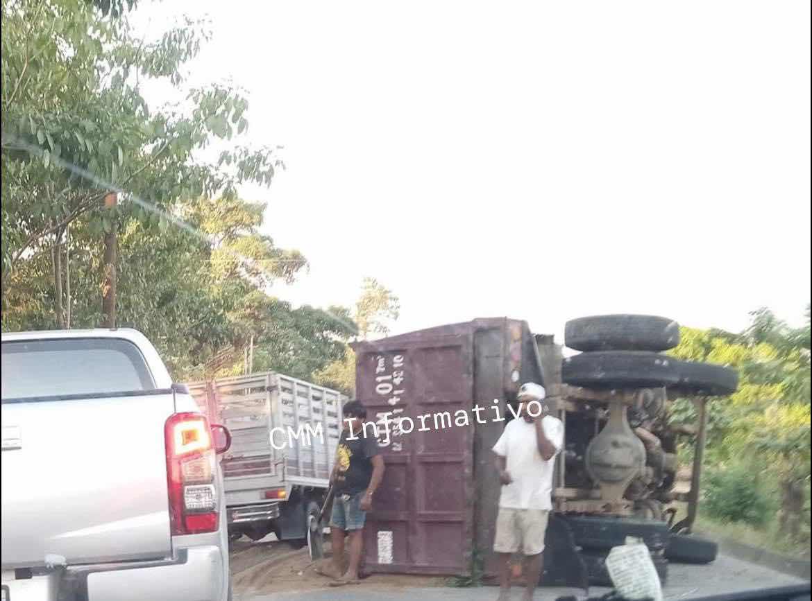 Pinotepa Nacional Oax., 25 noviembre 2024. Un camión Volteó se volcó esta tarde sobre la carretera estatal Tlacamama Pinotepa a la entrada de San Miguel Tlacamama en la costa de Oaxaca