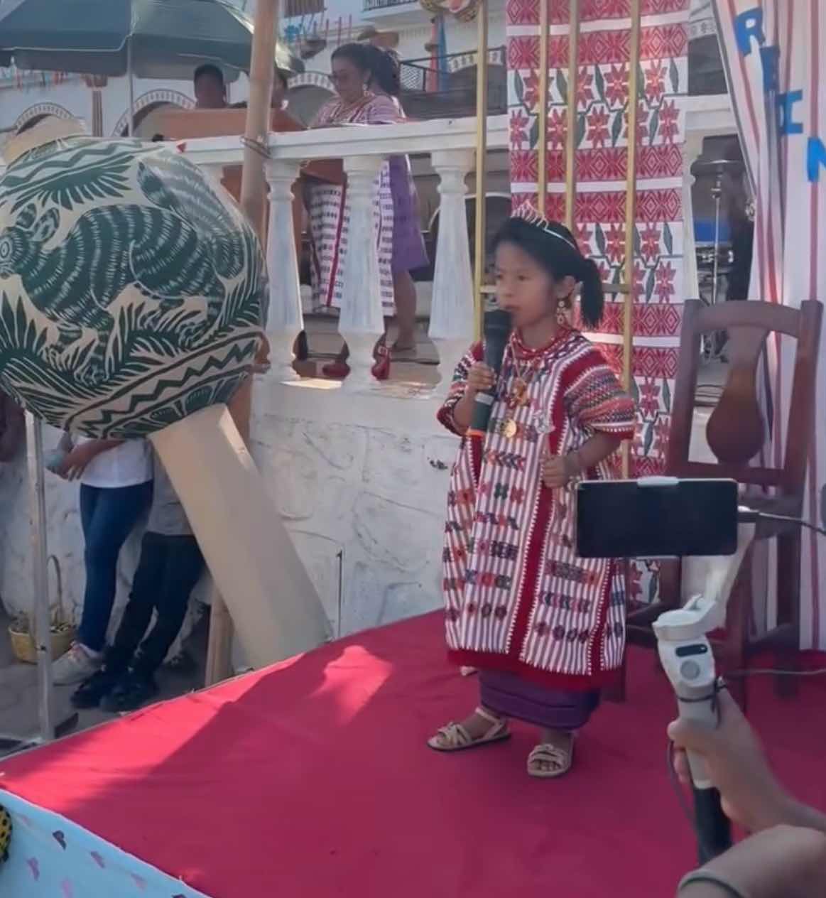 “ Muy buenas tardes, Tatas, nanas, autoridades, gente del pueblo. Maestros y maestras de la escuela Héroes de Chapultepec, mi nombre es Luna Amaya Marín Tapia, muchas gracias porque atendieron este llamado donde vamos a celebrar nuestro Carnavalito. Que hermoso que nuestro pueblo tengas tantas danzas. Que hermoso que podamos hablar el mixteco, porque esta es la costumbre antigua de nuestro pueblo desde el día que nació el sol. Muchas gracias a todos”.