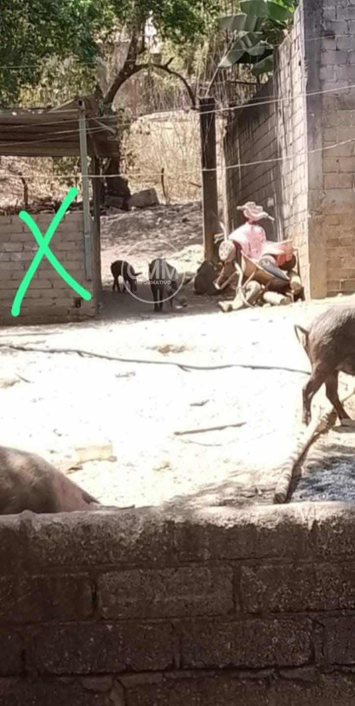 Pinotepa Nacional Oax., 29 marzo 2025. Vecinos de la colonia Barrio del Rastro, en Pinotepa Nacional, Oaxaca, denuncian que una persona de la zona mantiene a sus cerdos sueltos, lo que ha generado daños en propiedades cercanas sin que se asuma la responsabilidad.