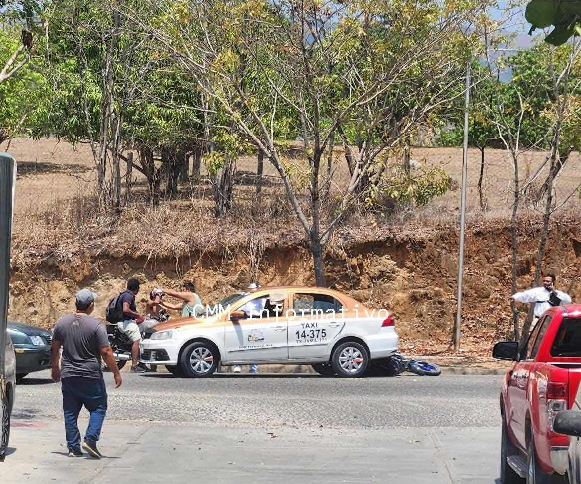 Pinotepa Nacional Oax., 26 marzo 2025. Un motociclista, alumno del Cobao 03, chocó contra un taxi hace unos minutos en el libramiento de Pinotepa Nacional Oaxaca