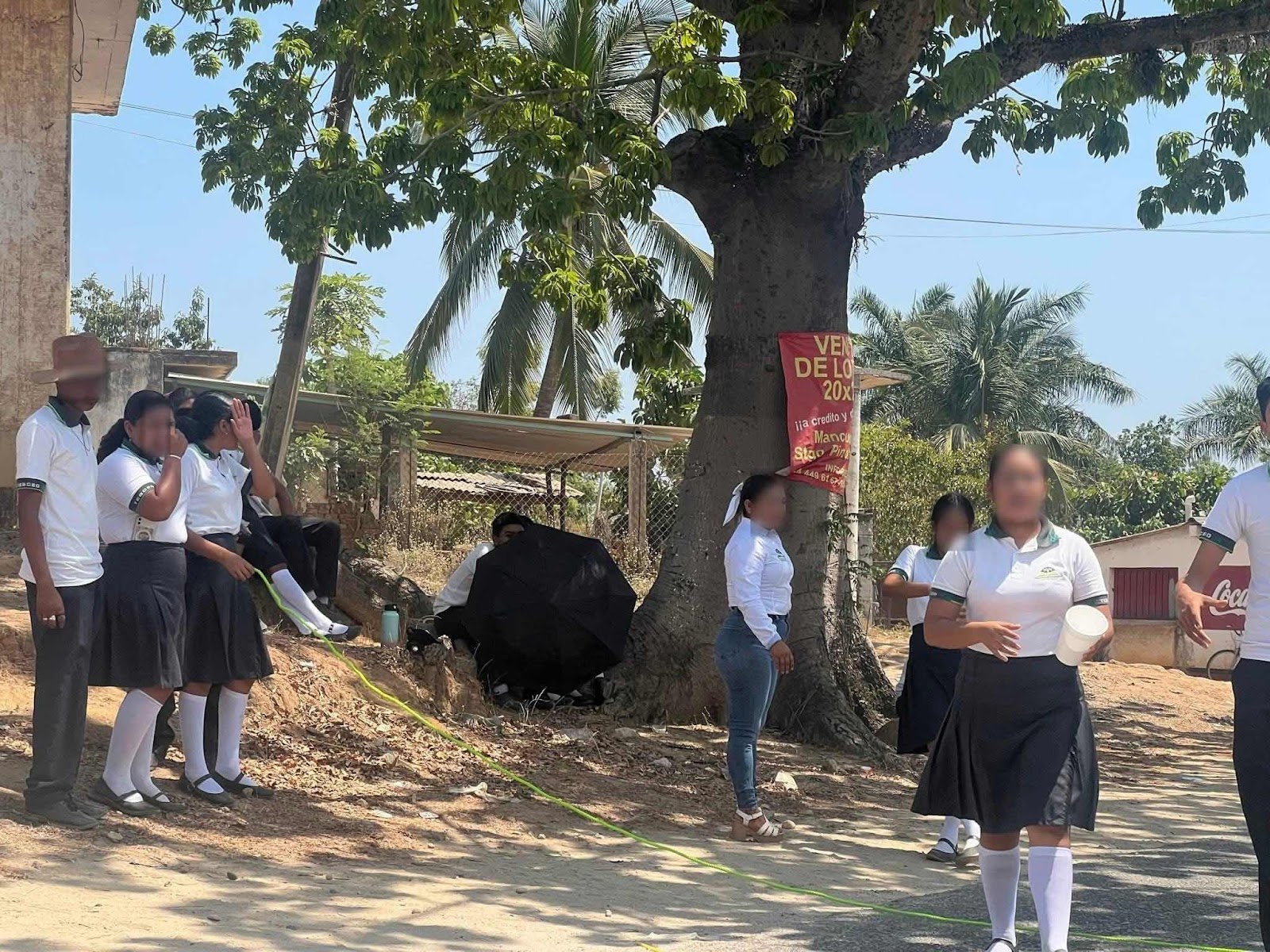 Pinotepa Nacional Oax., 07 abril 2025. Un grupo de estudiantes realiza un boteo en la carretera federal 200 Pinotepa Acapulco para el Telebachillerato Comunitario de la localidad de Mancuernas en el municipio de Pinotepa Nacional Oaxaca